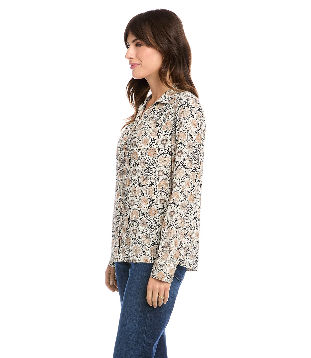 This button-up shirt is both casual and polished with a vintage-inspired floral print and a relaxed fit.