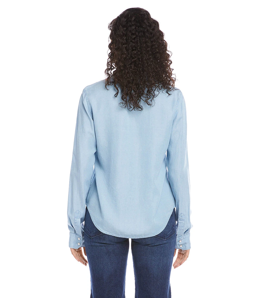 An effortless essential that is a must-have for your collection of wardrobe staples, this tencel chambray shirt delivers comfort with undeniable style. It’s detailed with flap front pockets.