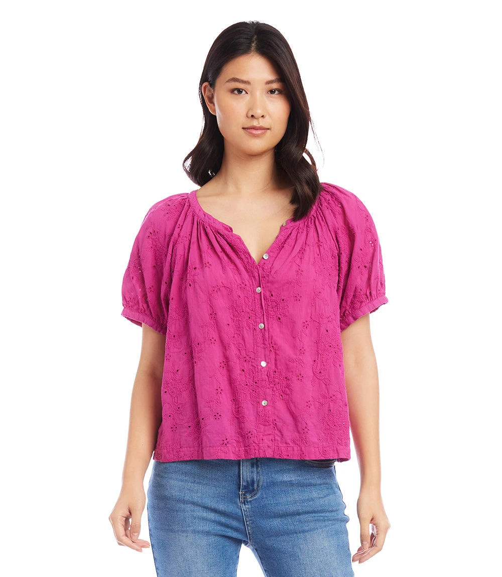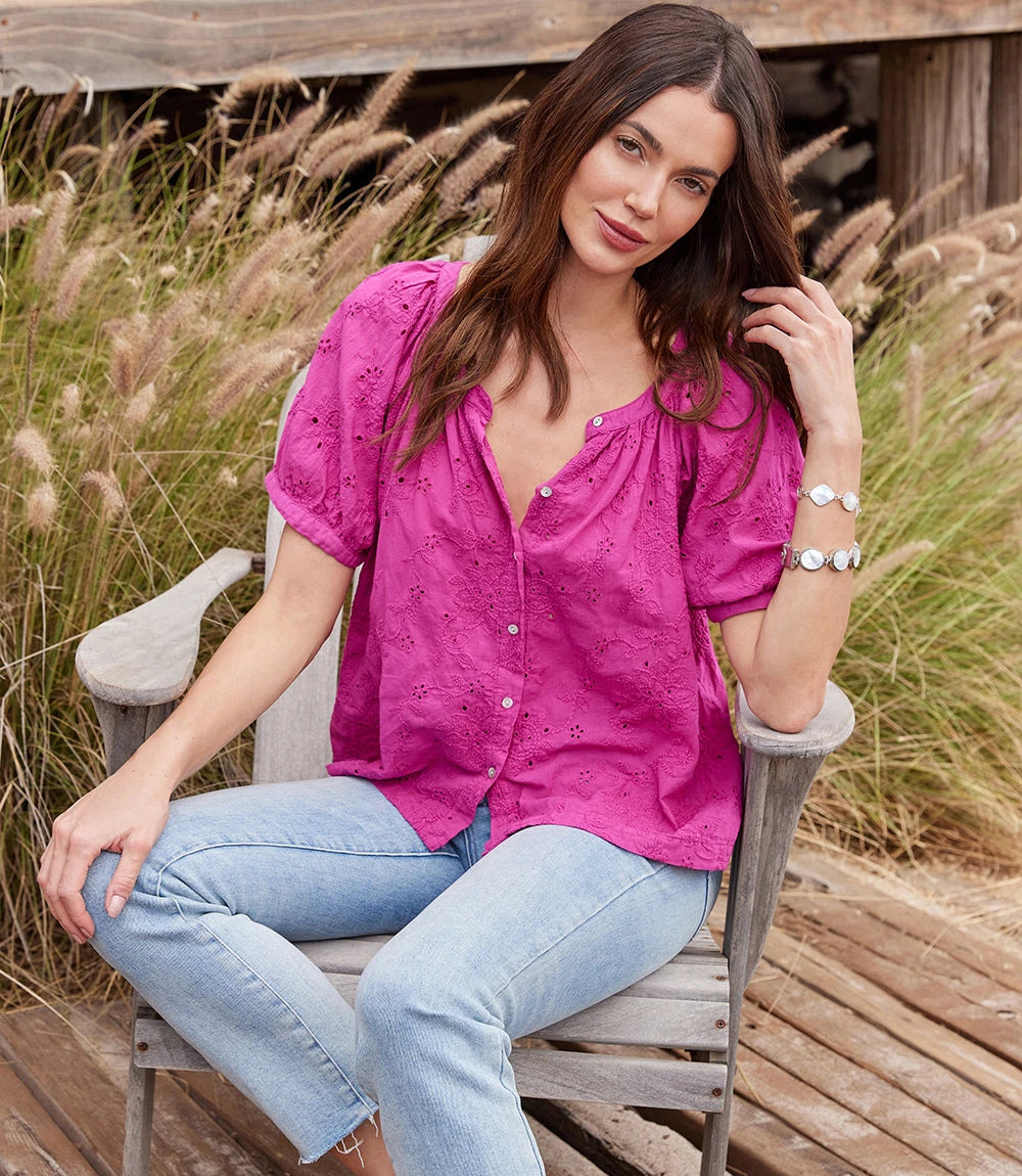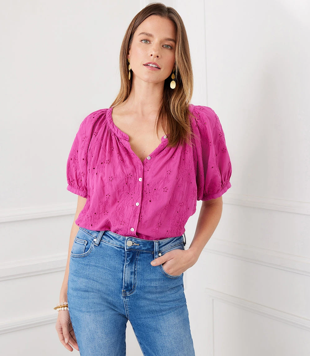 Airy eyelet detail gives this easy-fit top a sophisticated, dressed-up look.