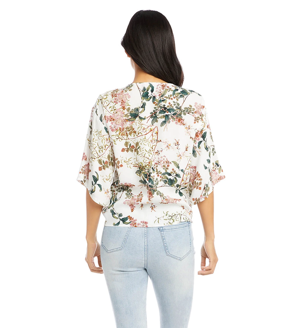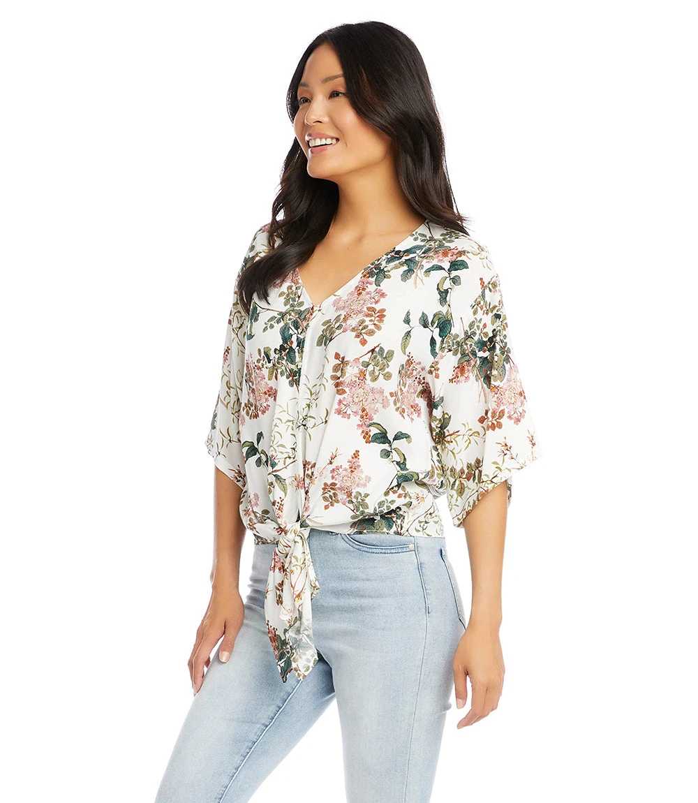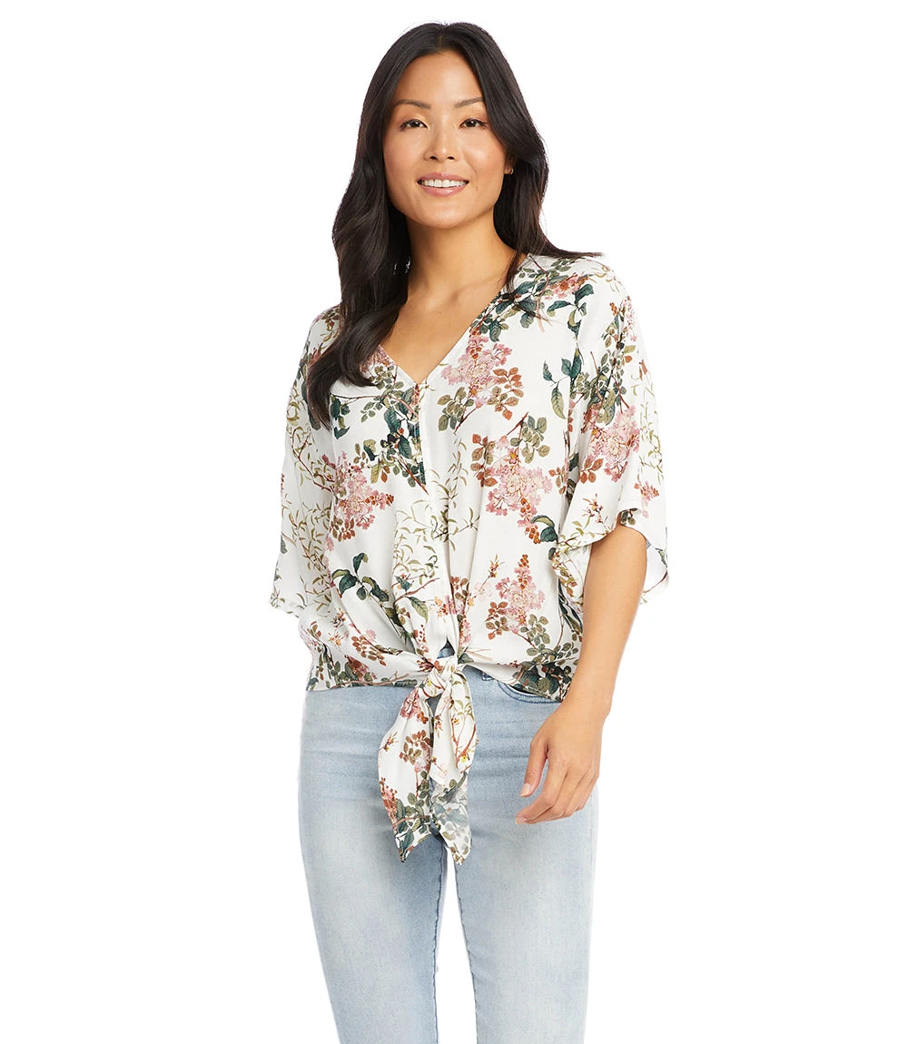 A romantic floral print elevates this crepe top finished with a stylish tie-front. This top pairs perfectly with high-waisted jeans.